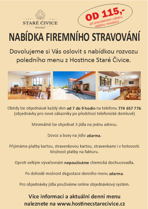- Minimální počet jídel k rozvozu jsou 3, při menším počtu je nutná osobní domluva dle vzdálenosti od hostince